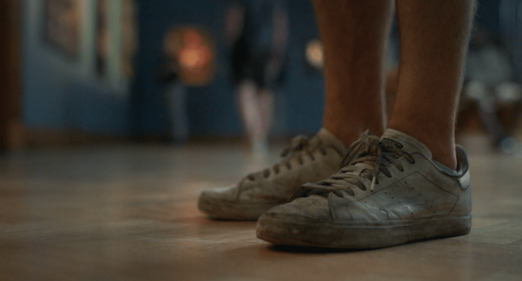 Párrafo aparte para acotar algo sobre dicho capitulo, el cual tiene uno de los planos más interesantes producto de una gran decisión del equipo de vestuario. El episodio inicia con Connell en un museo de Italia viendo una obra de arte. El museo, como todo museo, es elegante. Él mira la pintura con atención. Corte. Plano general del interior del museo donde se puede ver el ambiente social del mismo. Corte. Plano detalle de las zapatillas de Connell. Las zapatillas deberían ser blancas pero son de un color casi grisáceo por la suciedad y el paso del tiempo, a su vez, están gastadas por el uso. Esto no es más que otra desmarca en el sentimiento de no pertenencia de Connell. Las zapatillas gastadas denotan el nivel socioeconómico de él y lo exponen en un lugar al que no pertenece. En el capítulo se vuelve constantemente a sus zapatillas, aquel plano es reiterado. Durante todo el episodio usa las mismas zapatillas y estos planos nos los hacen saber, lo exponen, lo hacen sobresalir, no le permiten pertenecer del todo a aquel mundo. Al final del capítulo se repite la misma encadenación de planos que al inicio. Connell mira una obra y luego un plano general lo establece dentro del museo. La diferencia esencial es que este museo tiene las paredes y el piso de un color blanco casi perfecto, lo cual hace, lamentablemente, resaltar las zapatillas viejas de Connell.